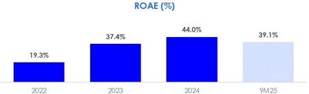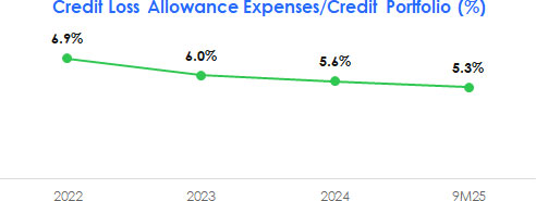 We define Risk-Adjusted NIM as net interest income for the four fiscal quarters preceding the date of calculation plus expected credit losses for the four fiscal quarters preceding the date of calculation divided by the average interest bearing assets over the five fiscal quarters preceding the date of calculation. For 2022 and 2023, we consider the average interest bearing assets as of December 31 for the respective fiscal years preceding the date of calculation due to the lack of available quarterly financial data for these periods. For the nine months ended September 30, 2025, we define Risk-Adjusted NIM as total annualized net interest income for the period plus expected credit losses for the period, divided by the average interest bearing assets for the four fiscal quarters ended September 30, 2025.