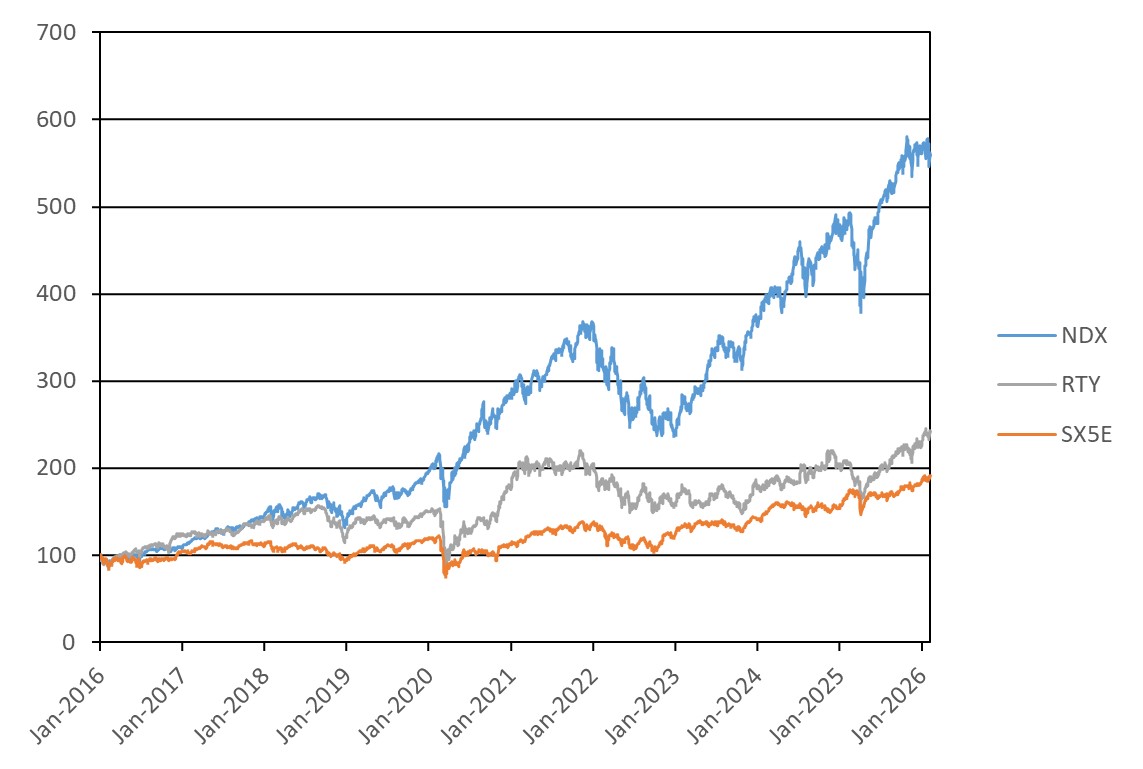 Notes linked to the least performing of the Nasdaq-100 Index®, the Russell 2000® Index and the EURO STOXX 50® Index |