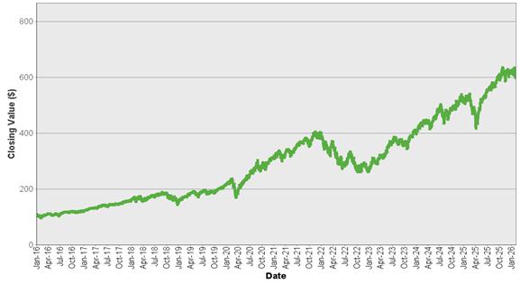 | Invesco QQQ TrustSM, Series 1 – Historical Closing Values January 4, 2016 to February 9, 2026 |