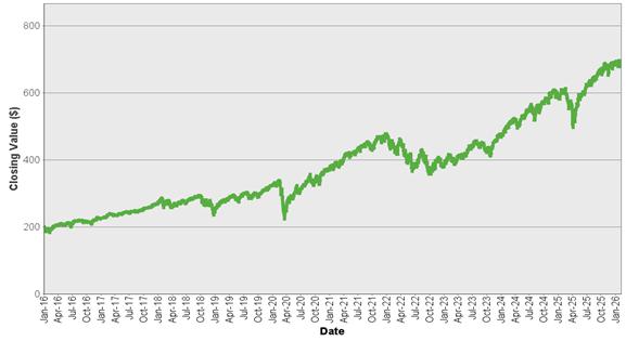 | State Street® SPDR® S&P 500® ETF Trust – Historical Closing Values January 4, 2016 to February 9, 2026 |