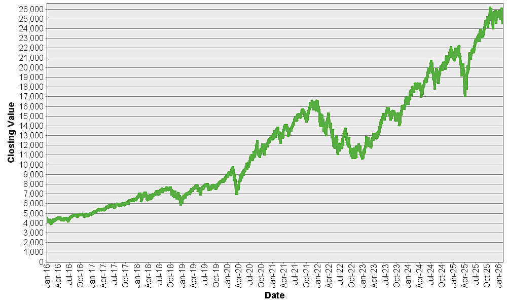 The graph below shows the closing value of the Nasdaq-100 Index® for each day such value was available from January 4, 2016 to February 9, 2026. We obtained the closing values from Bloomberg L.P., without independent verification. You should not take historical closing values as an indication of future performance.