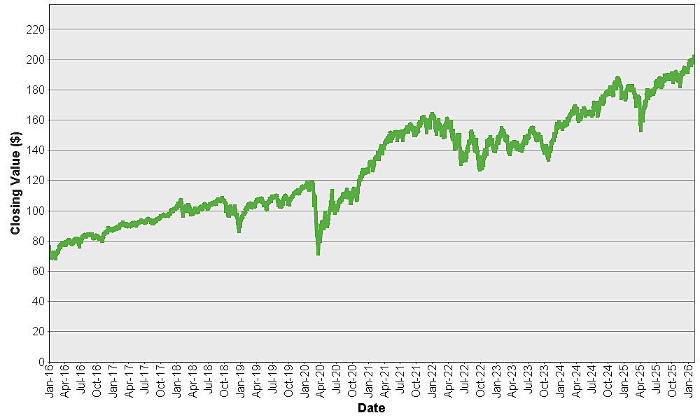 The graph below shows the closing value of the Invesco S&P 500® Equal Weight ETF for each day such value was available from January 4, 2016 to February 9, 2026. We obtained the closing values from Bloomberg L.P., without independent verification. You should not take historical closing values as an indication of future performance.