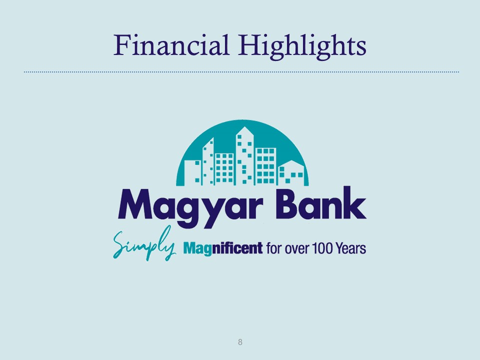 2025 Highlights ▪ Recognized as 5 - star Bank by Bauer Financial ▪ This is the highest rating given by Bauer ▪ Named to 2025 KBW Honor Roll ▪ Second consecutive year being named ▪ Recognizes high performing banks with the strongest and/or most consistent earnings growth over the past decade 7