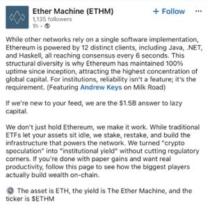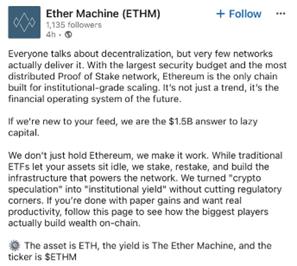 This communication contains certain forward-looking statements within the meaning of the U.S. federal securities laws with respect to the Proposed Transactions and the parties thereto, including expectations, hopes, beliefs, intentions, plans, prospects, results or strategies regarding Pubco, the Company, SPAC and the Proposed Transactions and statements regarding the anticipated benefits and timing of completion of the Proposed Transactions, business plans and investment strategies of Pubco, the Company and SPAC, expected use of the cash proceeds of the Proposed Transactions, the Company’s ability to stake and leverage capital markets and other staking operations and participation in restaking, the amount of capital expected to be received in the Proposed Transactions, the assets held by Pubco, Ether’s position as the most productive digital asset, plans to increase yield to investors, any expected growth or opportunities associated with Ether, Pubco’s listing on an applicable securities exchange and the timing of such listing, expectations of Ether to perform as a superior treasury asset, the upside potential and opportunity for investors resulting from any Proposed Transactions, any proposed transaction structures and offering terms and the Company’s and Pubco’s plans for Ether adoption, value creation, investor benefits and strategic advantages. These forward-looking statements generally are identified by the words “believe,” “project,” “expect,” “anticipate,” “estimate,” “intend,” “strategy,” “future,” “opportunity,” “potential,” “plan,” “may,” “should,” “will,” “would,” “will be,” “will continue,” “will likely result,” and similar expressions.