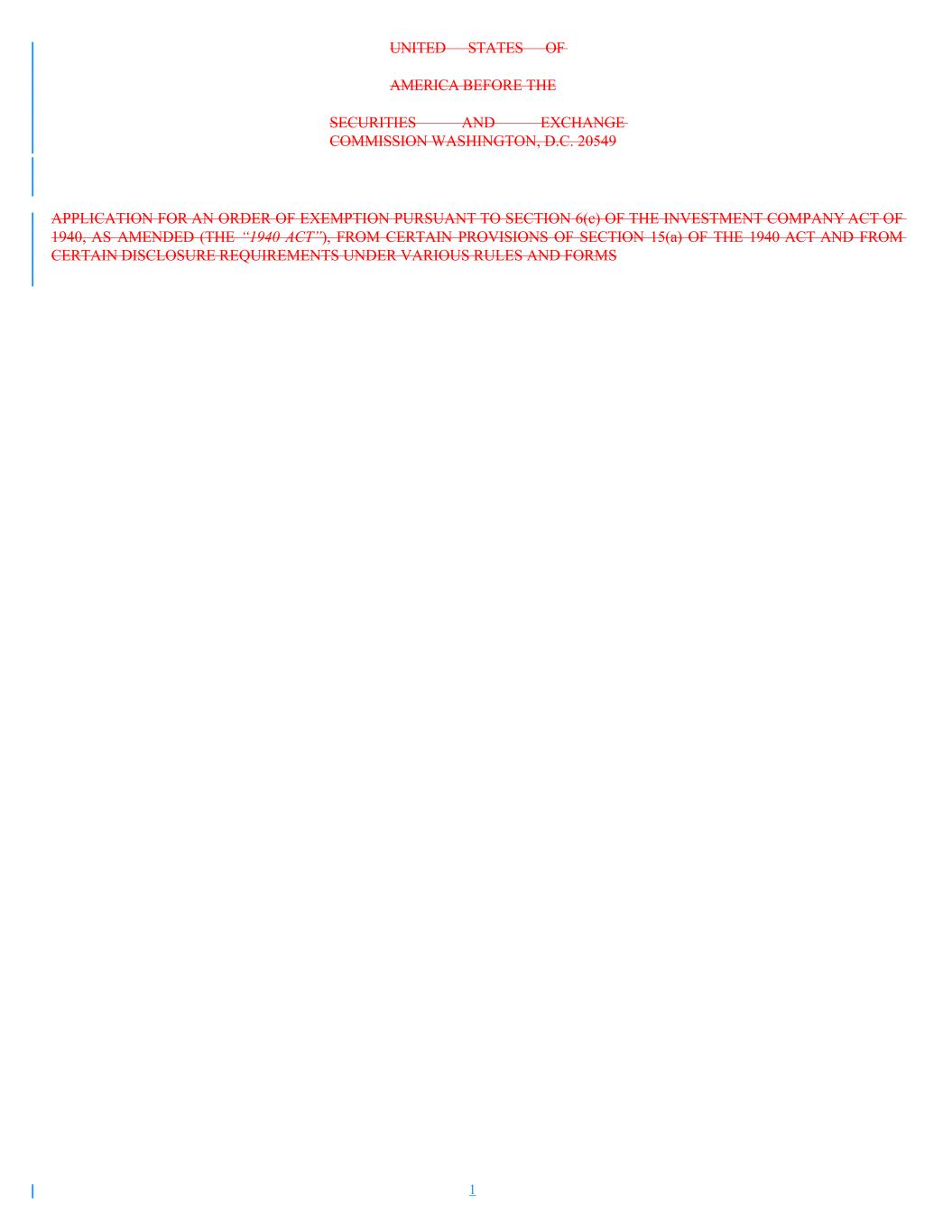 UNITED STATES OF AMERICA BEFORE THE SECURITIES AND EXCHANGE COMMISSION WASHINGTON, D.C. 20549 APPLICATION FOR AN ORDER OF EXEMPTION PURSUANT TO SECTION 6(c) OF THE INVESTMENT COMPANY ACT OF 1940, AS AMENDED (THE “1940 ACT”), FROM CERTAIN PROVISIONS OF SECTION 15(a) OF THE 1940 ACT AND FROM CERTAIN DISCLOSURE REQUIREMENTS UNDER VARIOUS RULES AND FORMS 1