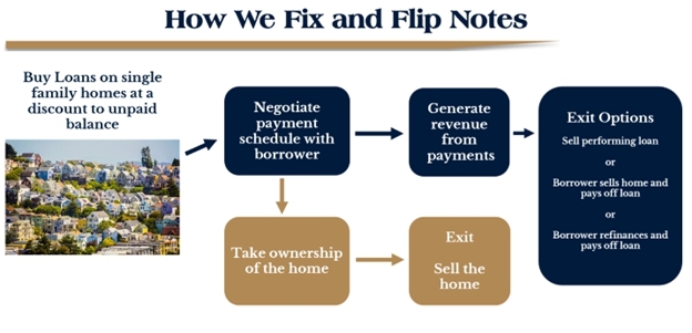 The Company originates short term business purpose mortgage loans secured by real estate. Business Purpose Mortgage Loans are provided to a borrower to “bridge” the gap until the borrower secures permanent financing or sells the property. These loans are typically issued to borrowers to perform renovations to the property or acquire a property. Business Purpose Mortgage Loans originated by the Company are typically interest only with the full principal balance due at maturity and are typically twelve months in contractual duration. Business Purpose Mortgage Loans may contain options for borrowers who are current on their loan payments to extend the maturity date of the loan in exchange for an extension fee. Extensions are typically granted for up to six months in duration.