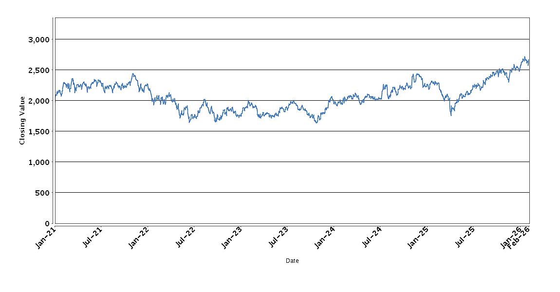 The graph below sets forth the historical performance of the SPX Index based on the daily Closing Value from January 4, 2021 through February 9, 2026. We obtained the Closing Values shown in the graph below from Bloomberg. We have not independently verified the accuracy or completeness of the information obtained from Bloomberg.