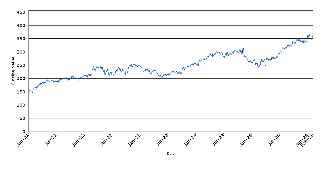 The graph below sets forth the historical performance of General Dynamics Corporation based on the daily Closing Value from January 4, 2021 through February 9, 2026. We obtained the Closing Values shown in the graph below from Bloomberg. We have not independently verified the accuracy or completeness of the information obtained from Bloomberg. These historical closing values may have been adjusted to reflect certain corporate actions such as stock splits and reverse stock splits.