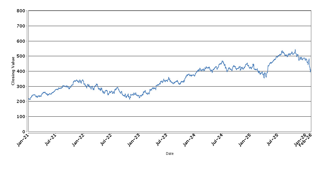 The graph below sets forth the historical performance of Microsoft Corporation based on the daily Closing Value from January 4, 2021 through February 9, 2026. We obtained the Closing Values shown in the graph below from Bloomberg. We have not independently verified the accuracy or completeness of the information obtained from Bloomberg. These historical closing values may have been adjusted to reflect certain corporate actions such as stock splits and reverse stock splits.