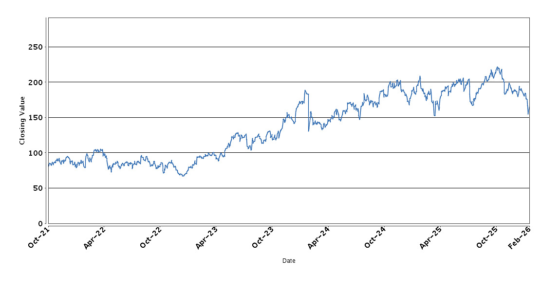 The graph below sets forth the historical performance of Palo Alto Networks, Inc. based on the daily Closing Value from October 25, 2021 through February 9, 2026. The common stock of Palo Alto Networks, Inc. began trading on the Nasdaq Global Select Market on October 25, 2021 and therefore has limited performance history. We obtained the Closing Values shown in the graph below from Bloomberg. We have not independently verified the accuracy or completeness of the information obtained from Bloomberg. These historical closing values may have been adjusted to reflect certain corporate actions such as stock splits and reverse stock splits.