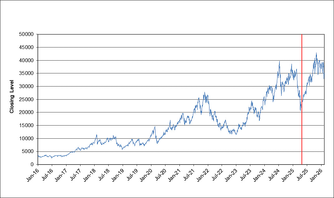 The Index Calculation Agent began calculating the Index on a live basis on April 22, 2025. All values of the Index prior to that date are calculated using available data as to how the Index may have performed in the pre-launch date period. Accordingly, the graph below illustrates: