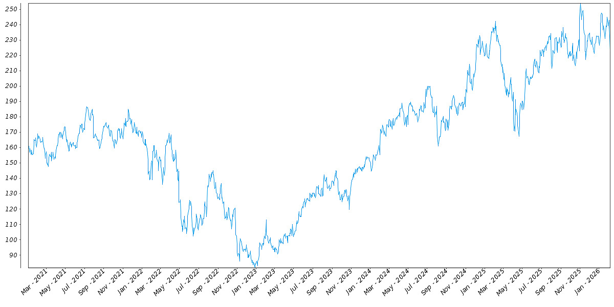 The following graph sets forth the daily historical performance of AMZN in the period from January 2, 2021 through the Strike Date. We obtained this historical data from Bloomberg L.P. We have not independently verified the accuracy or completeness of the information obtained from Bloomberg L.P. The Closing Market Prices reflected in the graph below may have been adjusted to reflect certain corporate actions, such as stock splits and reverse stock splits. On the Strike Date, the Closing Market Price of AMZN was $222.69.