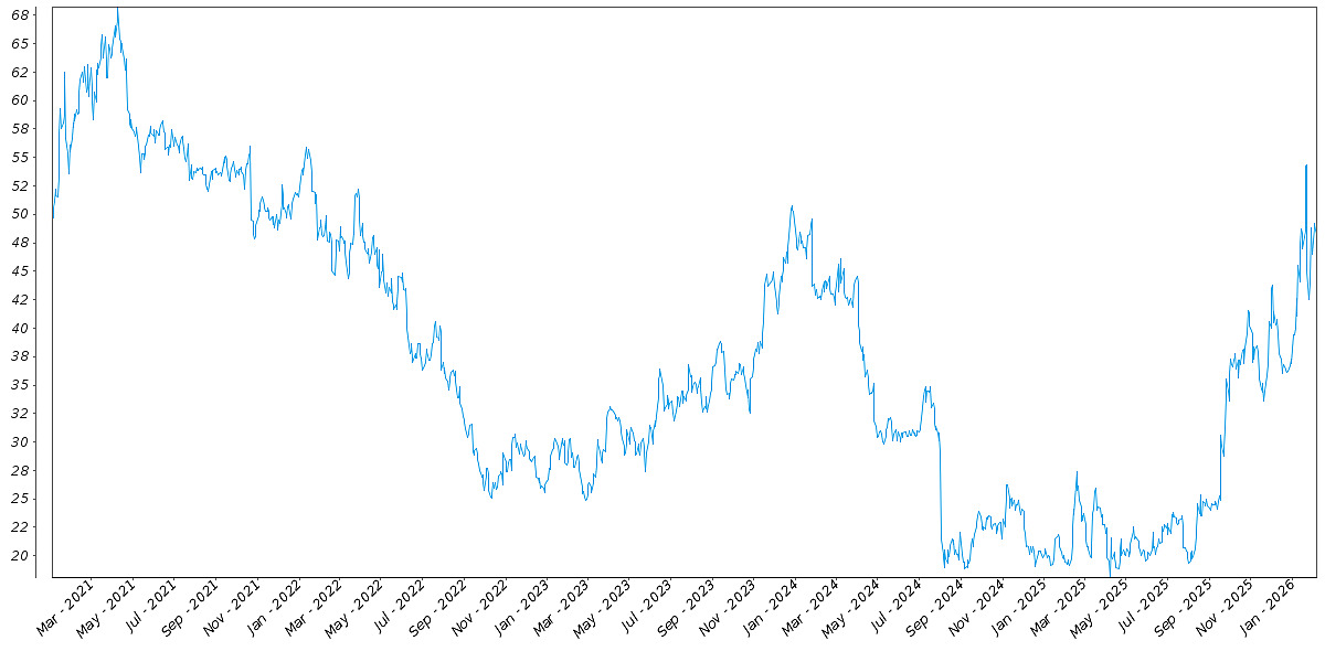 The following graph sets forth the daily historical performance of INTC in the period from January 2, 2021 through the Strike Date. We obtained this historical data from Bloomberg L.P. We have not independently verified the accuracy or completeness of the information obtained from Bloomberg L.P. The Closing Market Prices reflected in the graph below may have been adjusted to reflect certain corporate actions, such as stock splits and reverse stock splits. On the Strike Date, the Closing Market Price of INTC was $48.24.