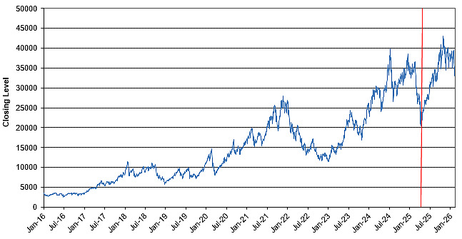 The Index Calculation Agent began calculating the Index on a live basis on April 22, 2025. All values of the Index prior to that date are calculated using available data as to how the Index may have performed in the pre-launch date period. Accordingly, the graph below illustrates: