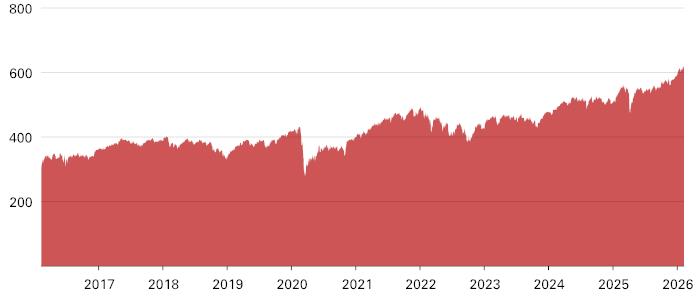 The graph above illustrates the daily performance of the Reference Asset from February 9, 2016 through February 9, 2026. The closing values in the graph above were obtained from the Bloomberg Professional® Service. Past performance is not necessarily an indication of future results.