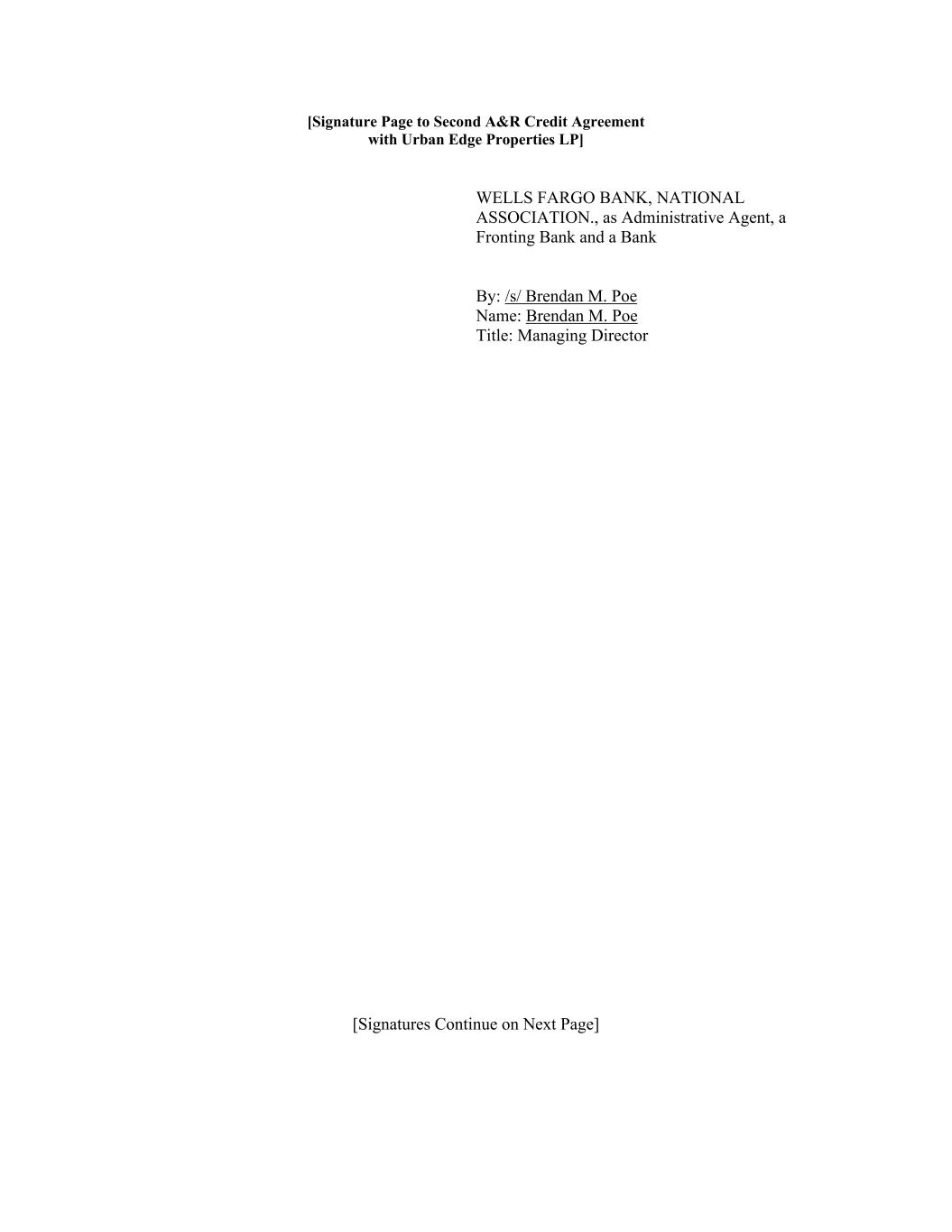 [Signature Page to Second A&R Credit Agreement with Urban Edge Properties LP] WELLS FARGO BANK, NATIONAL ASSOCIATION., as Administrative Agent, a Fronting Bank and a Bank By: /s/ Brendan M. Poe Name: Brendan M. Poe Title: Managing Director [Signatures Continue on Next Page]