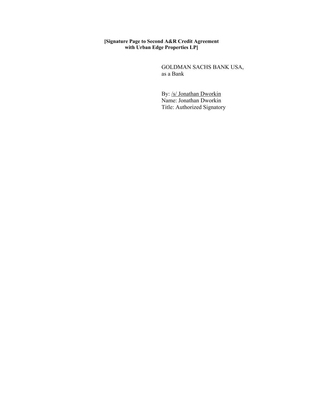 [Signature Page to Second A&R Credit Agreement with Urban Edge Properties LP] GOLDMAN SACHS BANK USA, as a Bank By: /s/ Jonathan Dworkin Name: Jonathan Dworkin Title: Authorized Signatory