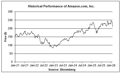 The following graph sets forth the historical performance of the Reference Stock based on the weekly historical closing prices of one share of the Reference Stock from January 8, 2021 through February 6, 2026. The closing price of one share of the Reference Stock on February 9, 2026 was $208.72. We obtained the closing prices above and below from the Bloomberg Professional® service (“Bloomberg”), without independent verification. The closing prices may have been adjusted by Bloomberg for corporate actions such as stock splits, public offerings, mergers and acquisitions, spin-offs, delistings and bankruptcy.