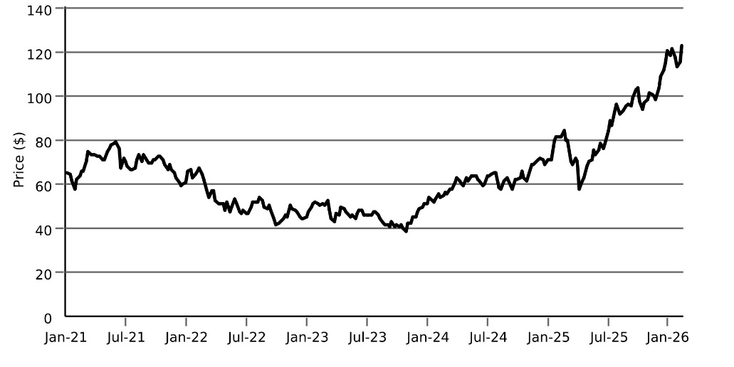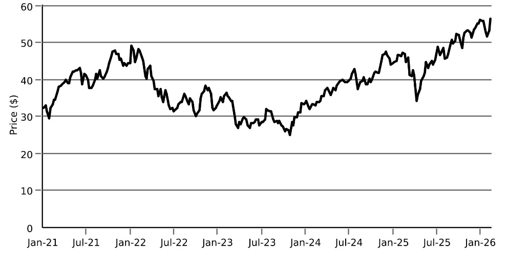 The following graphs set forth the historical performance of each Reference Stock based on the weekly historical closing prices of one share of that Reference Stock from January 8, 2021 through February 6, 2026. The closing prices above and below may have been adjusted by Bloomberg for corporate actions, such as stock splits, public offerings, mergers and acquisitions, spin-offs, delistings and bankruptcy.