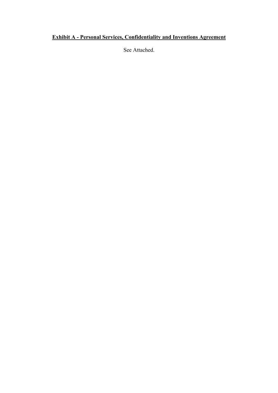 Exhibit A - Personal Services, Confidentiality and Inventions Agreement See Attached.