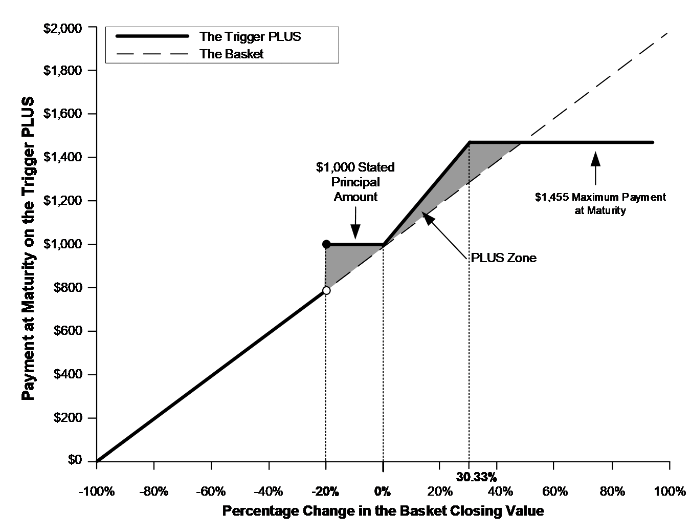 ●The amount payable on the Trigger PLUS is not linked to the basket closing value at any time other than the valuation date.