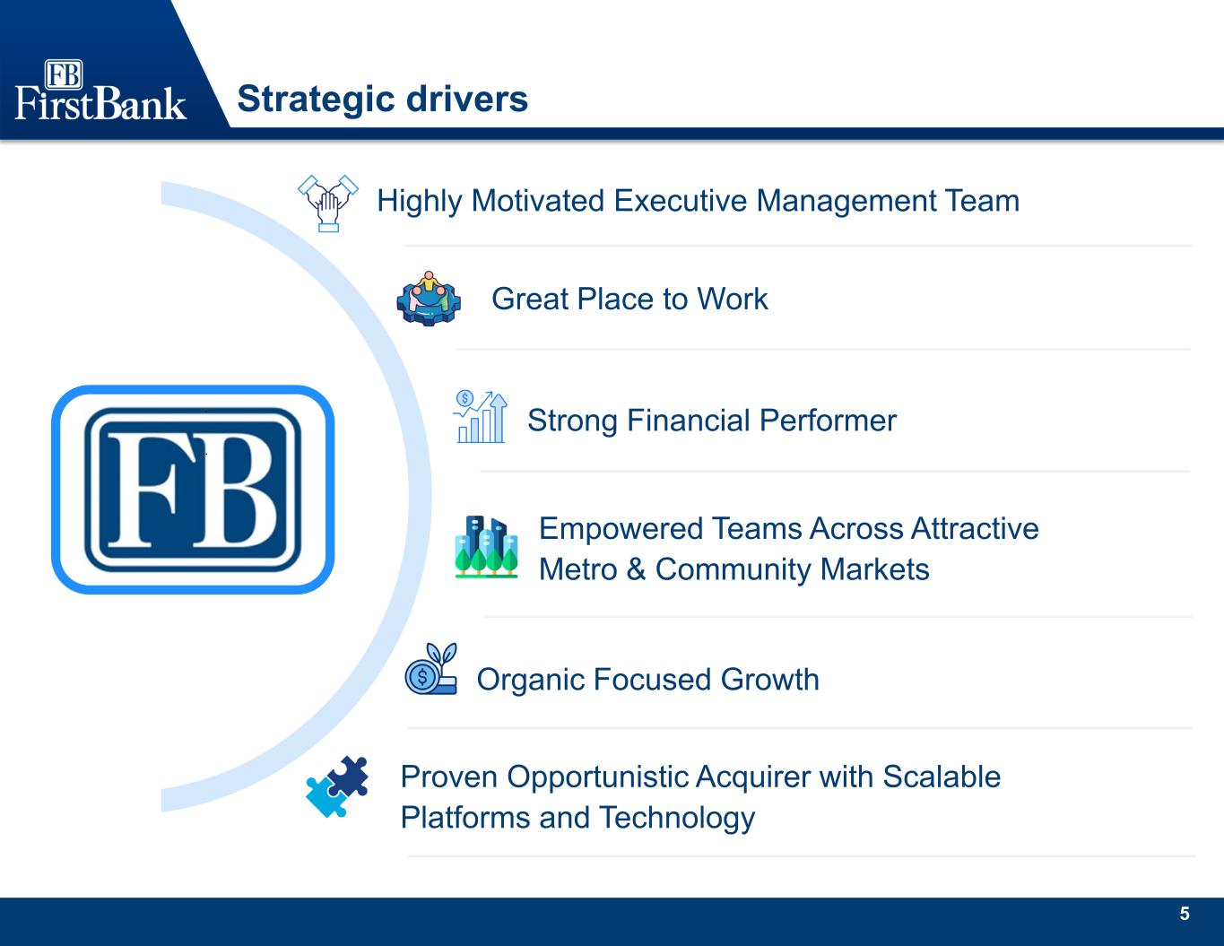 5 Strategic drivers Highly Motivated Executive Management Team Great Place to Work Strong Financial Performer Empowered Teams Across Attractive Metro & Community Markets Organic Focused Growth Proven Opportunistic Acquirer with Scalable Platforms and Technology