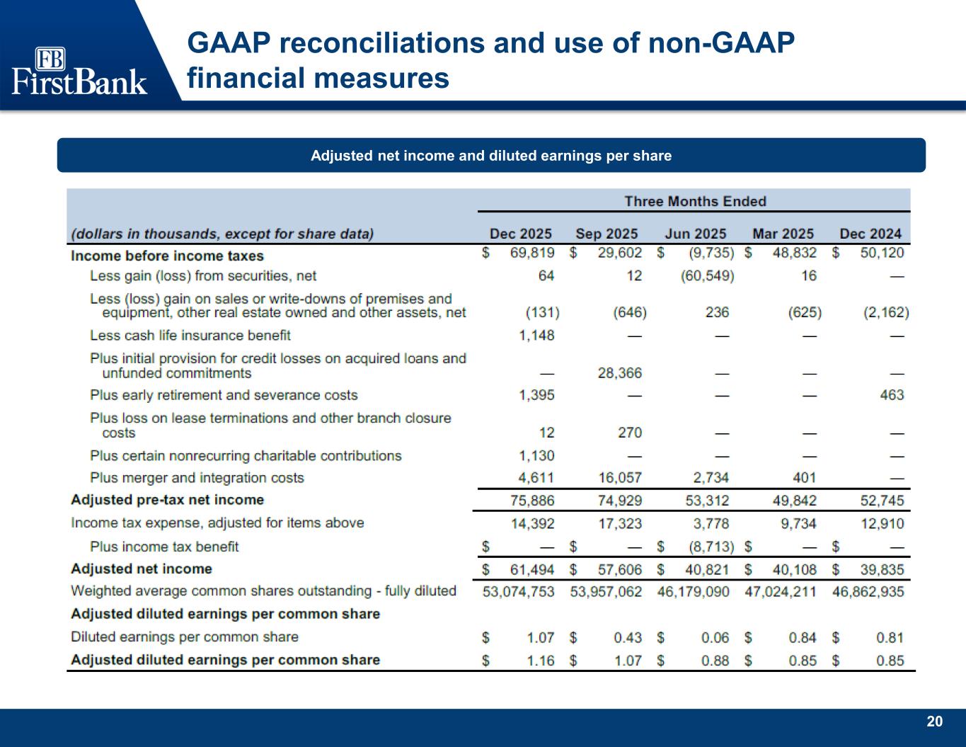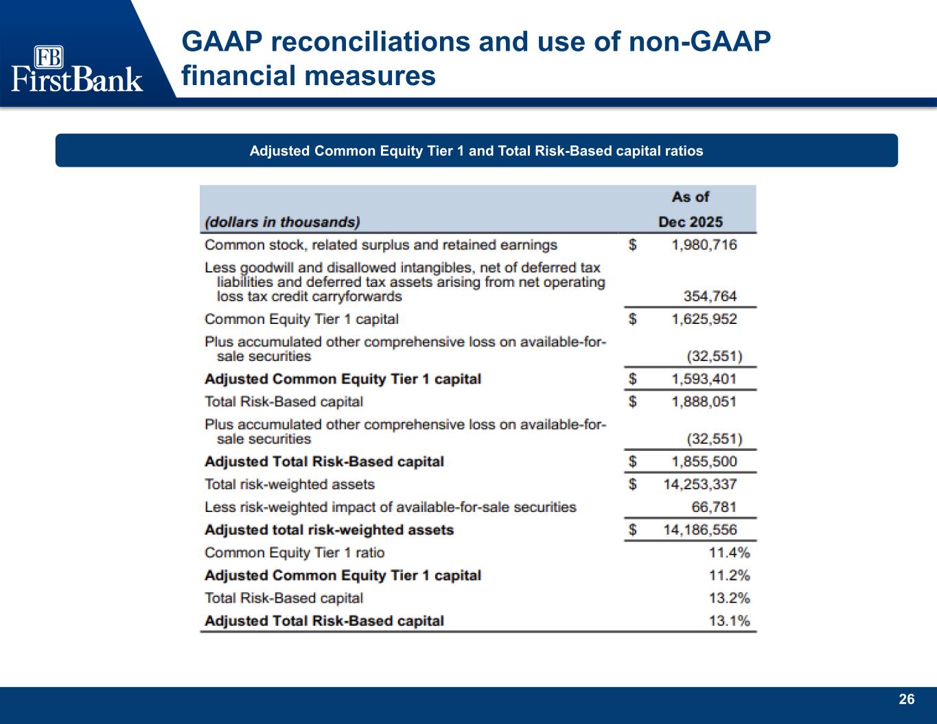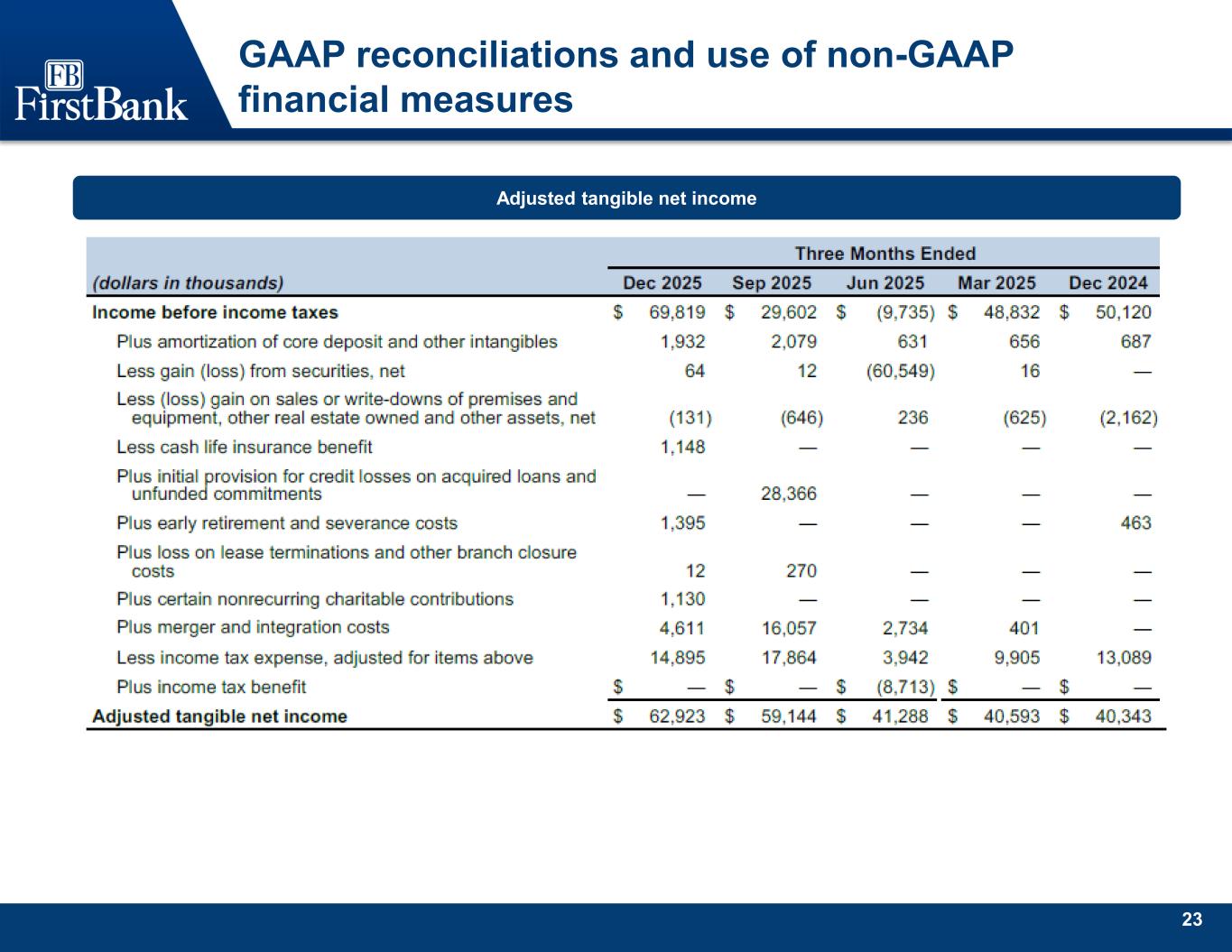 25 GAAP reconciliations and use of non-GAAP financial measures Adjusted tangible net income