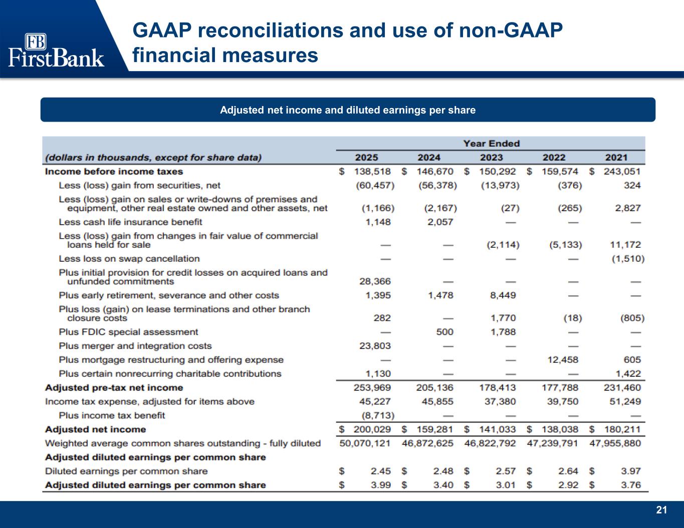 20 GAAP reconciliations and use of non-GAAP financial measures Adjusted net income and diluted earnings per share