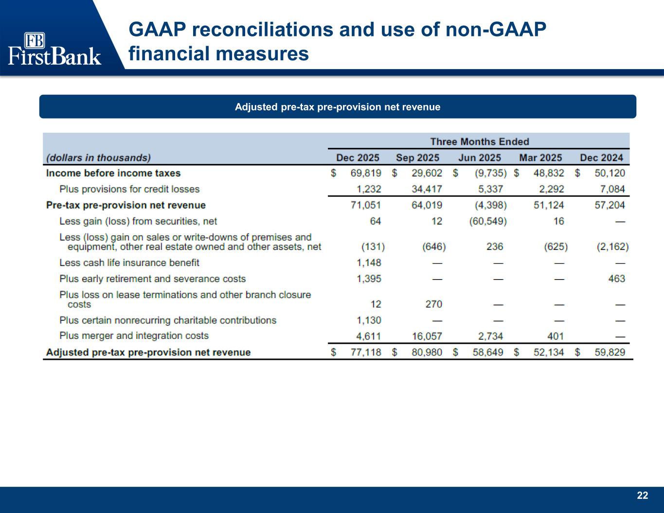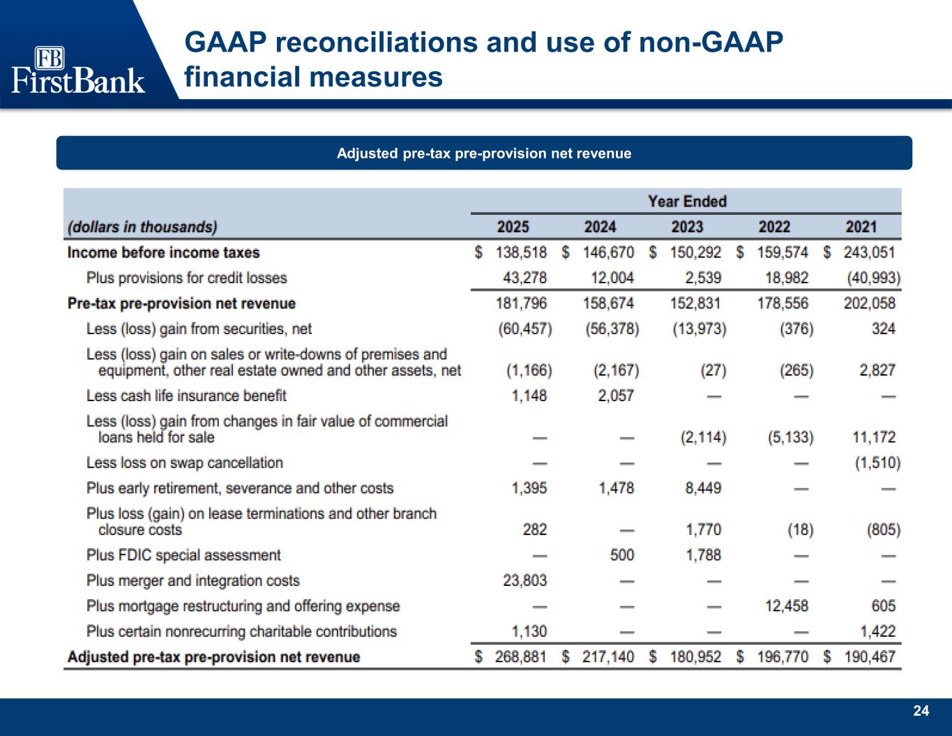 24 GAAP reconciliations and use of non-GAAP financial measures Adjusted pre-tax pre-provision net revenue