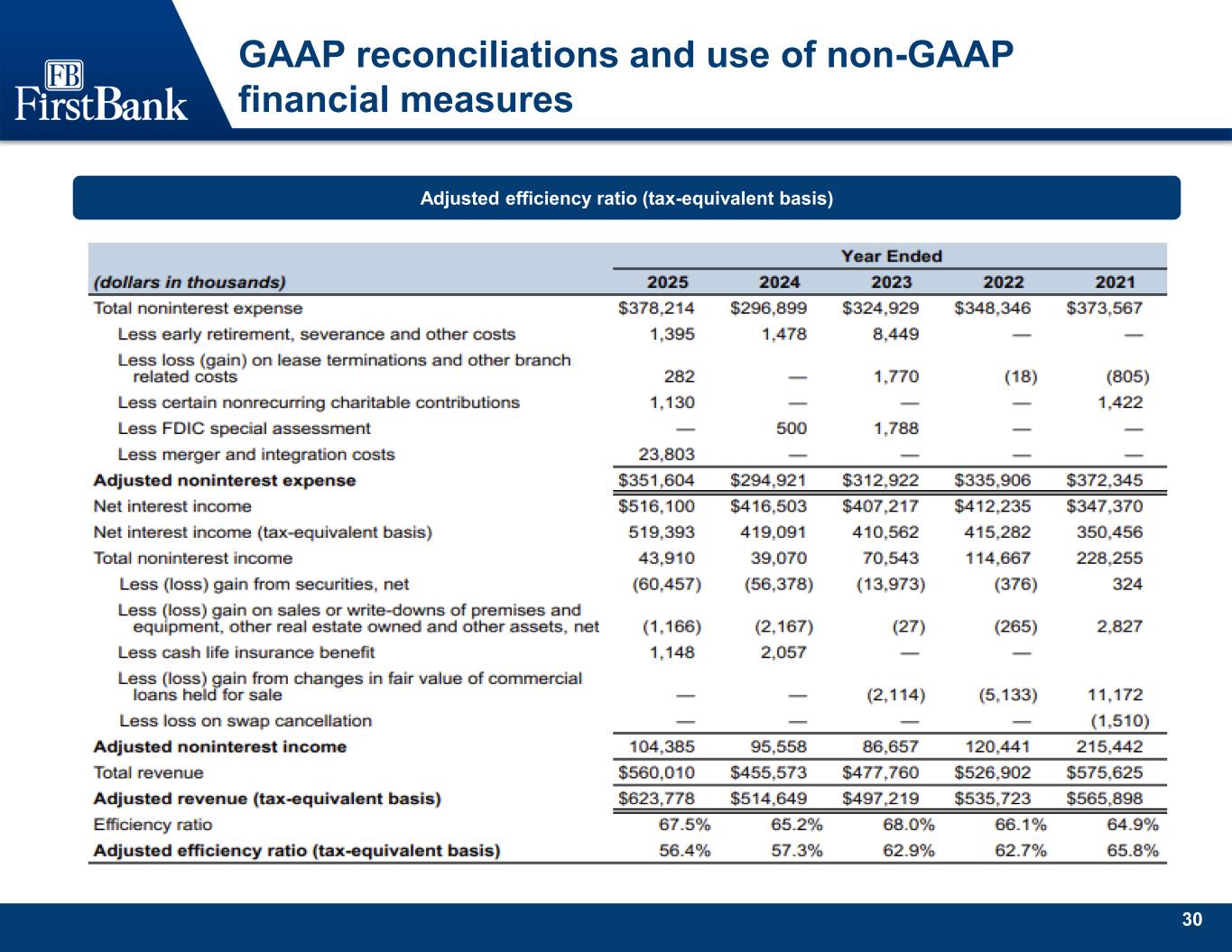 30 GAAP reconciliations and use of non-GAAP financial measures Adjusted efficiency ratio (tax-equivalent basis)