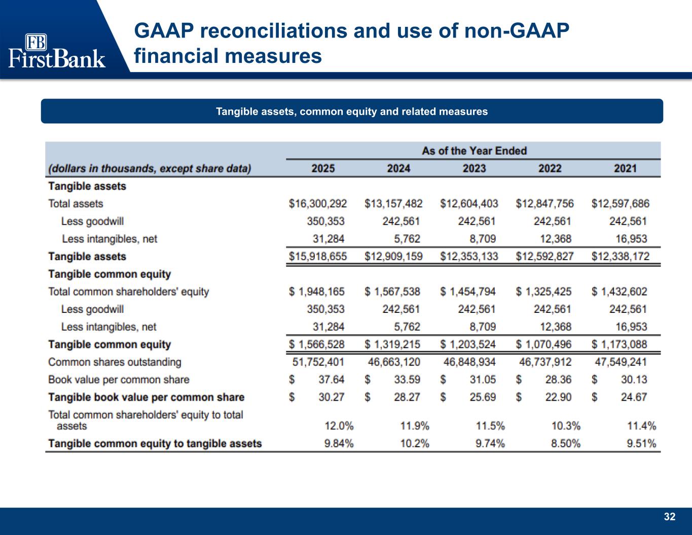 32 GAAP reconciliations and use of non-GAAP financial measures Tangible assets, common equity and related measures