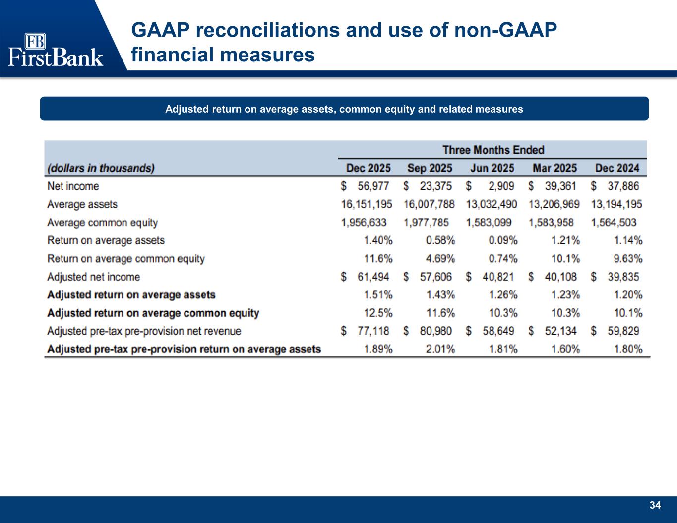 34 GAAP reconciliations and use of non-GAAP financial measures Adjusted return on average assets, common equity and related measures
