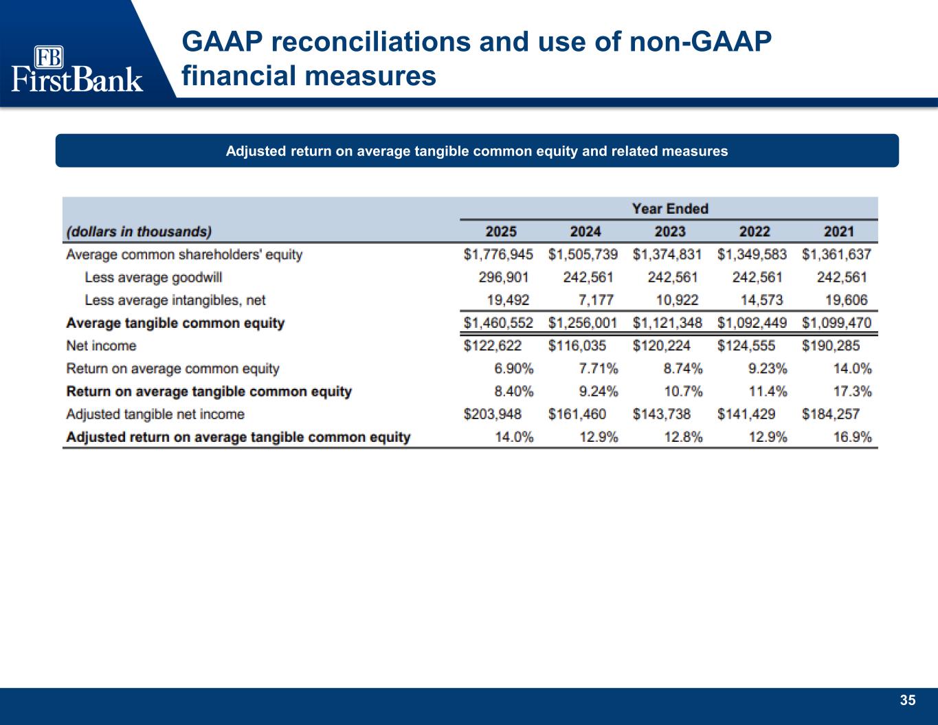 35 GAAP reconciliations and use of non-GAAP financial measures Adjusted return on average tangible common equity and related measures