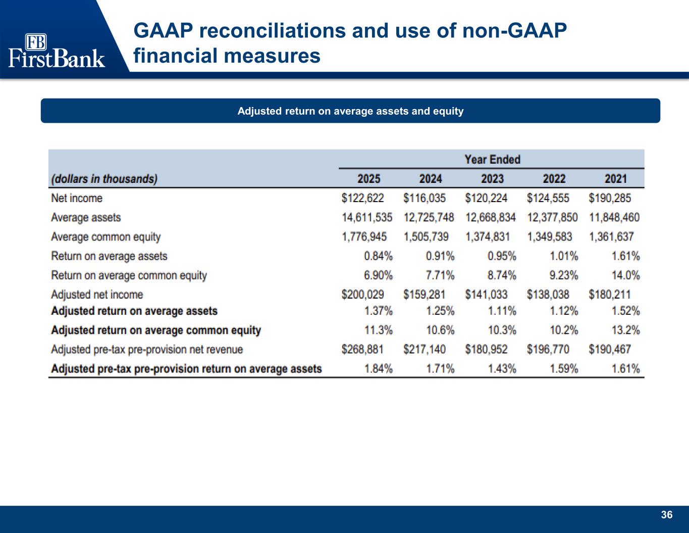 36 GAAP reconciliations and use of non-GAAP financial measures Adjusted return on average assets and equity