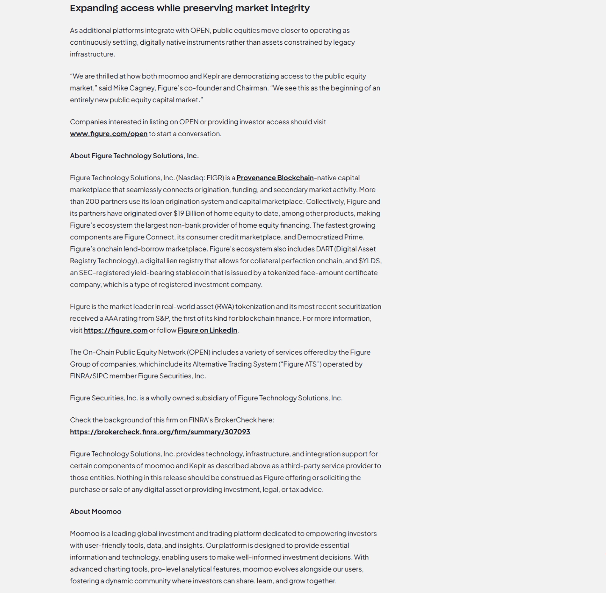 “We are thrilled at how both Moomoo and Keplr are democratizing access to the public equity market,” said Mike Cagney, Figure’s co-founder and Chairman. “We see this as the beginning of an entirely new public equity capital market.”