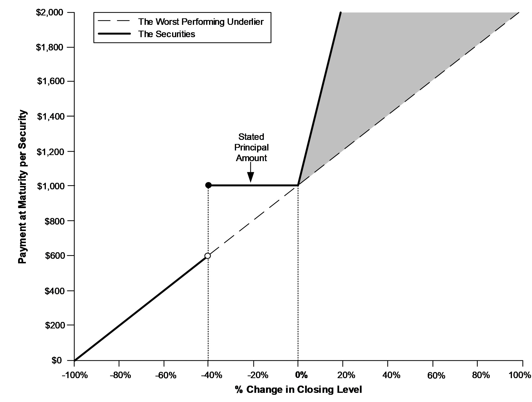 oIf the worst performing underlier depreciates 85%, investors will lose 85% of their principal and receive only $150 per security at maturity, or 15% of the stated principal amount.