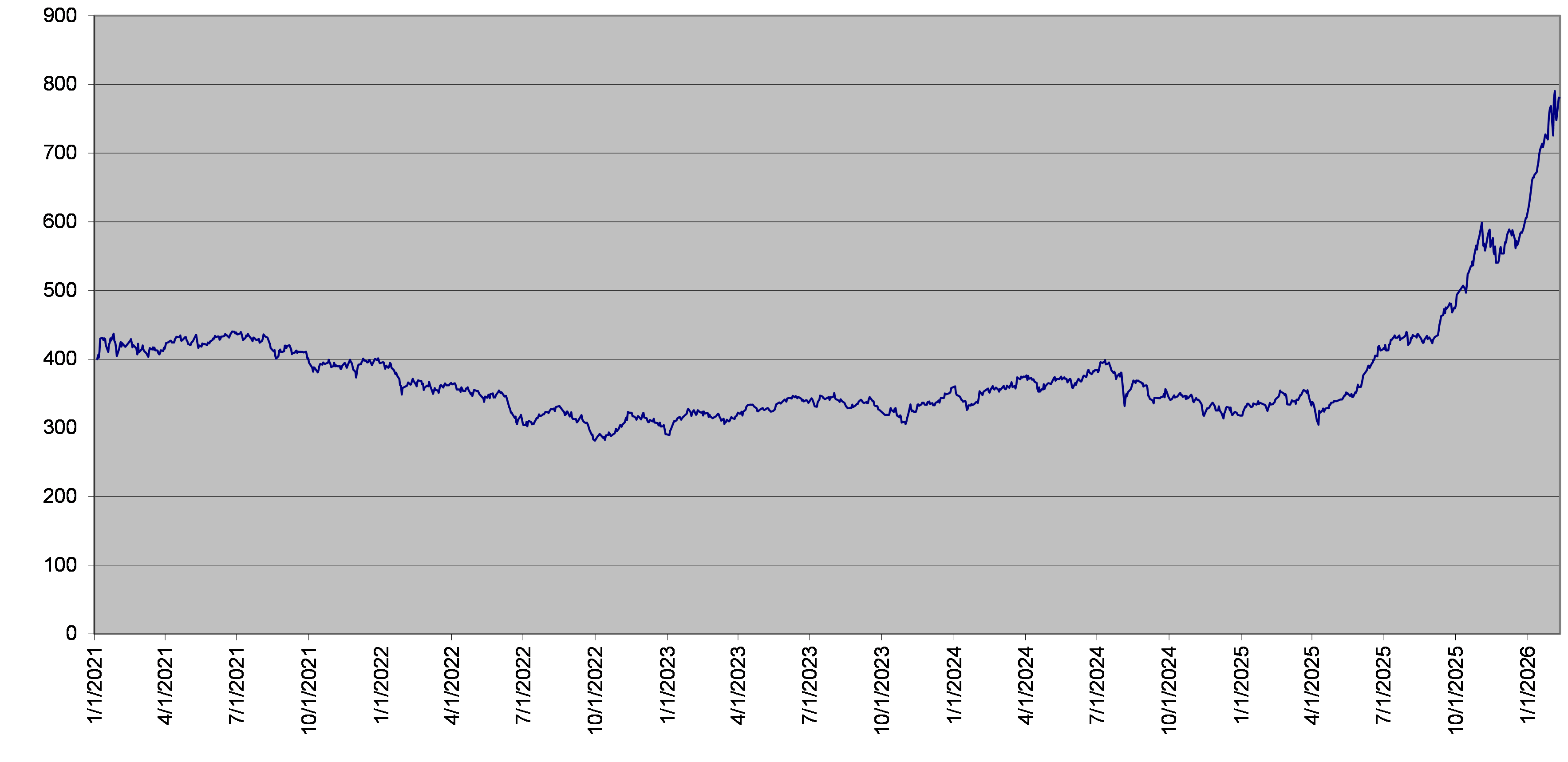 KOSPI2 Index Daily Closing Levels January 1, 2021 to February 10, 2026 |