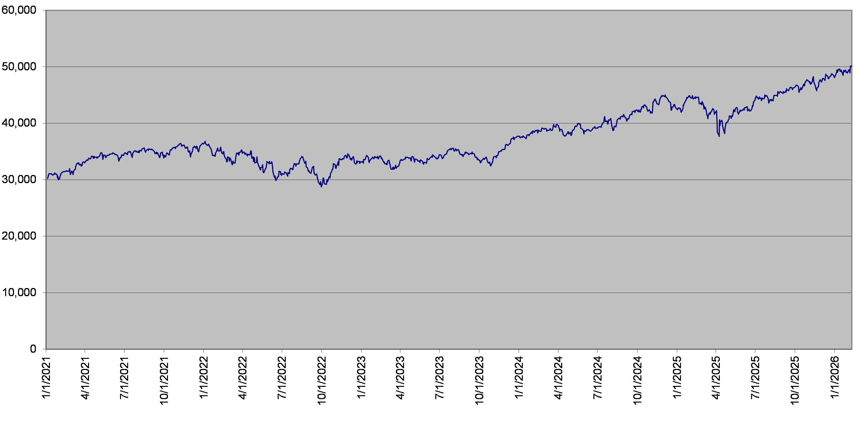 Dow Jones Industrial AverageSM Daily Closing Levels January 1, 2021 to February 9, 2026 |