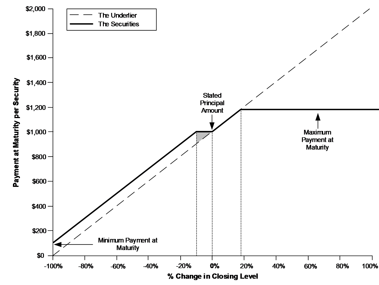oIf the underlier appreciates 5%, investors will receive $1,050 per security, or 105% of the stated principal amount.