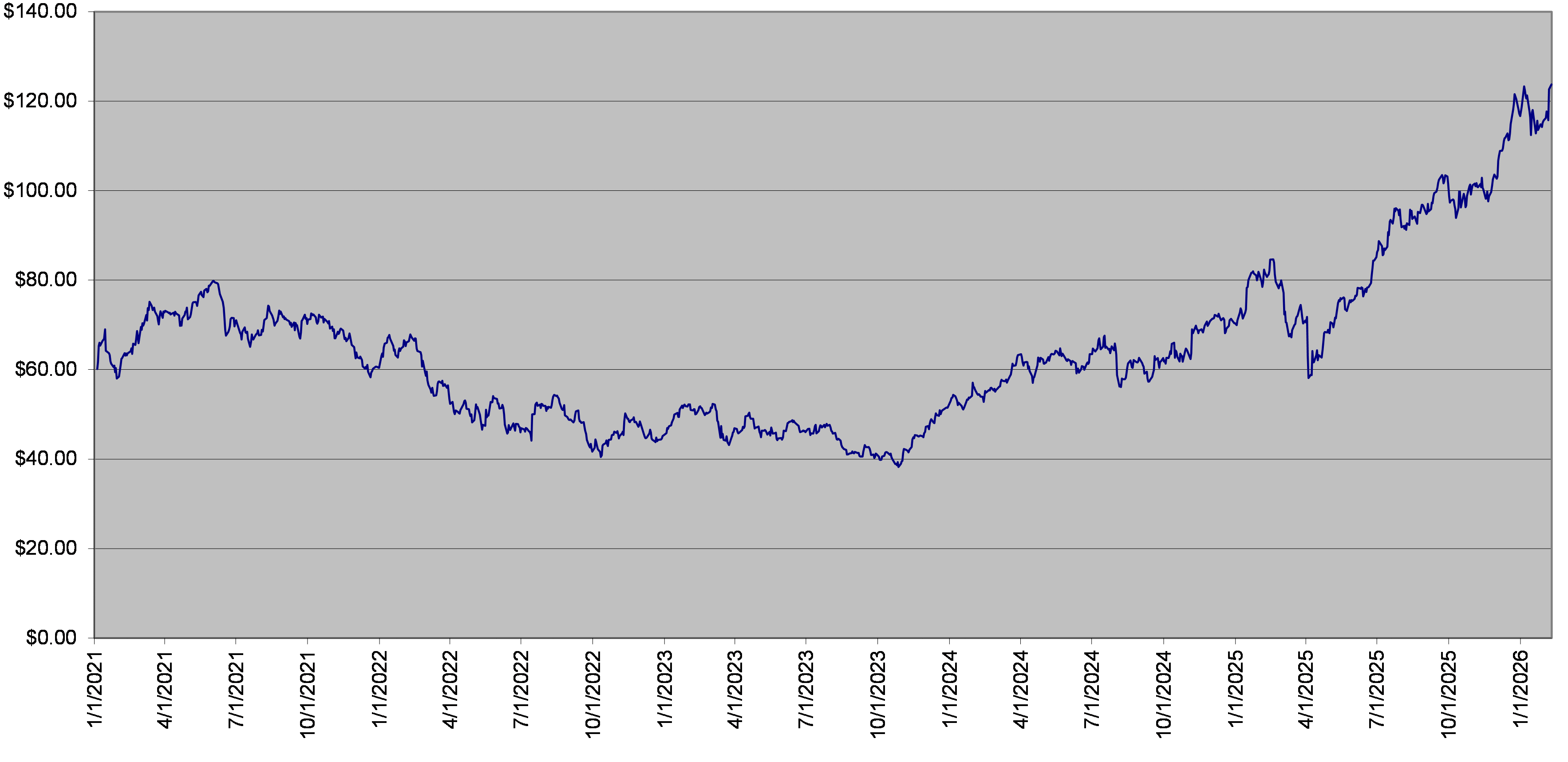C Stock Daily Closing Levels January 1, 2021 to February 9, 2026 |