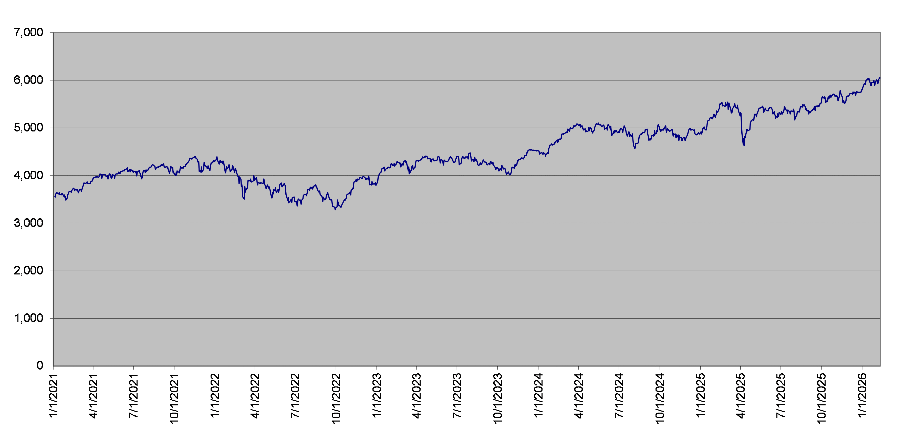 The index closing value of the underlying index on February 10, 2026 was 6,047.06. The following graph sets forth the daily closing values of the underlying index for the period noted below. We obtained the historical information presented in this document from Bloomberg Financial Markets, without independent verification. The underlying index has at times experienced periods of high volatility. The historical performance of the underlying index should not be taken as an indication of its future performance, and no assurance can be given as to the index closing value of the underlying stock at any time.
