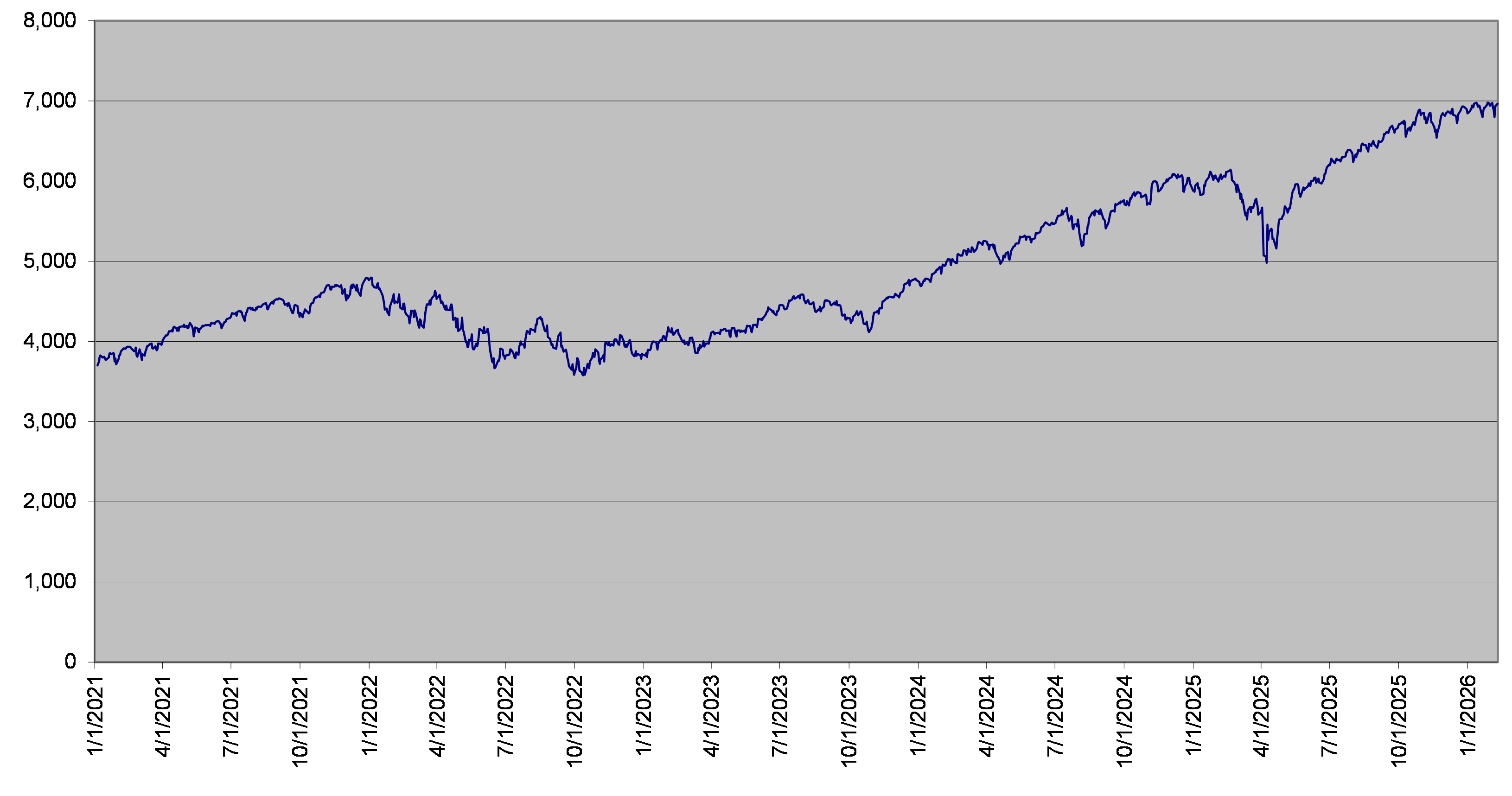 SPX Index Daily Closing Levels January 1, 2021 to February 9, 2026 |