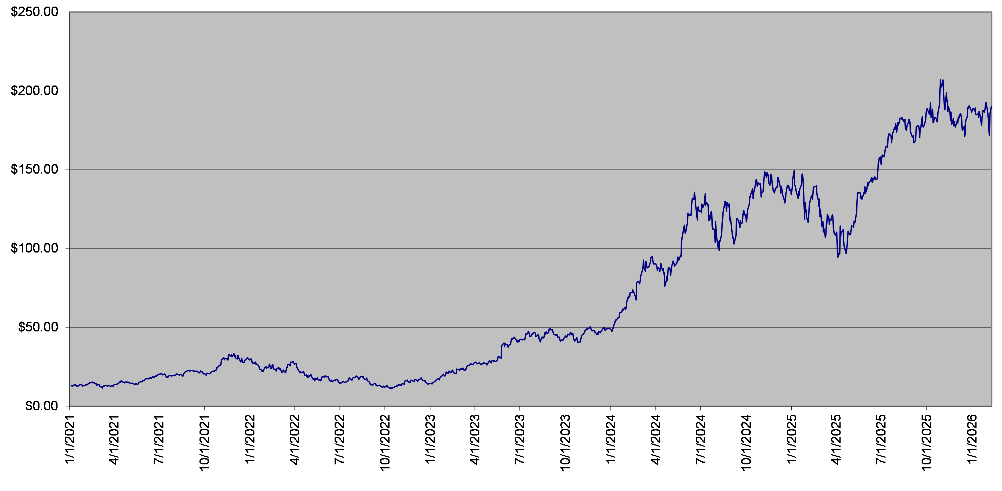 NVDA Stock Daily Closing Levels January 1, 2021 to February 9, 2026 |