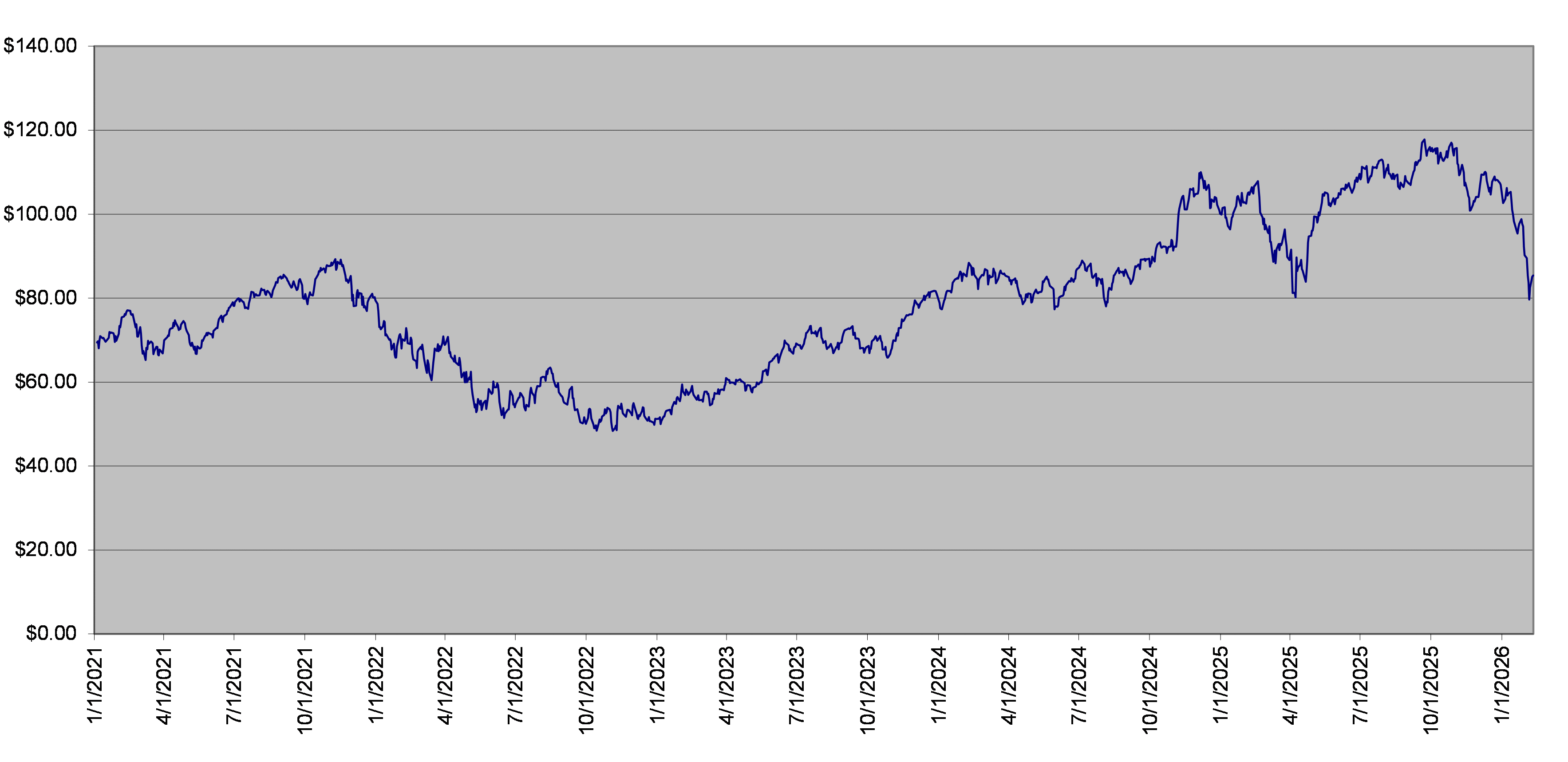 The closing level of the underlier on February 10, 2026 was $85.42. The following graph sets forth the daily closing levels of the underlier for the period noted below. We obtained the historical information presented in this document from Bloomberg Financial Markets, without independent verification. The underlier has at times experienced periods of high volatility. You should not take the historical closing levels of the underlier as an indication of its future performance, and no assurance can be given as to the closing level of the underlier at any time.
