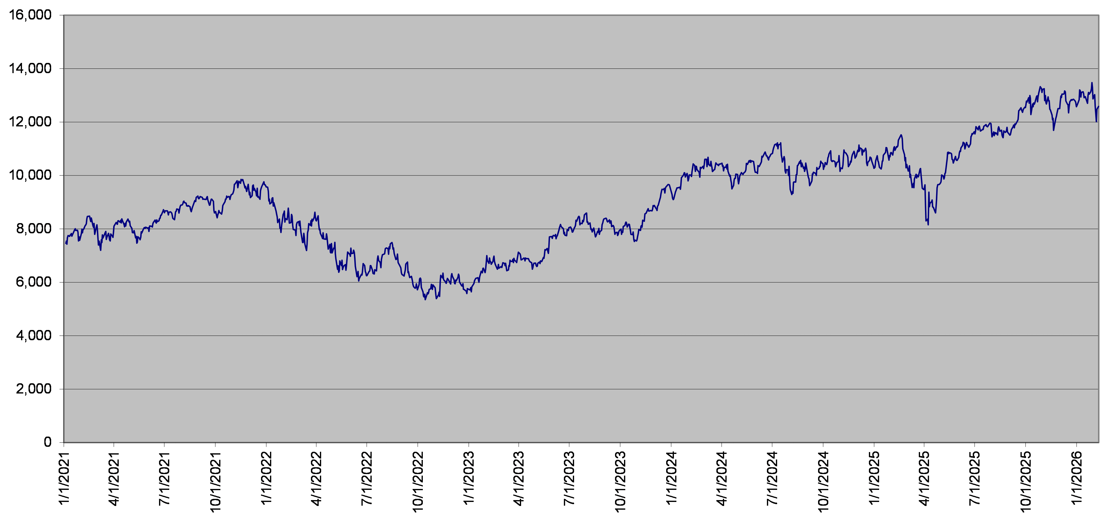 NDXT Index Daily Closing Levels January 1, 2021 to February 9, 2026 |