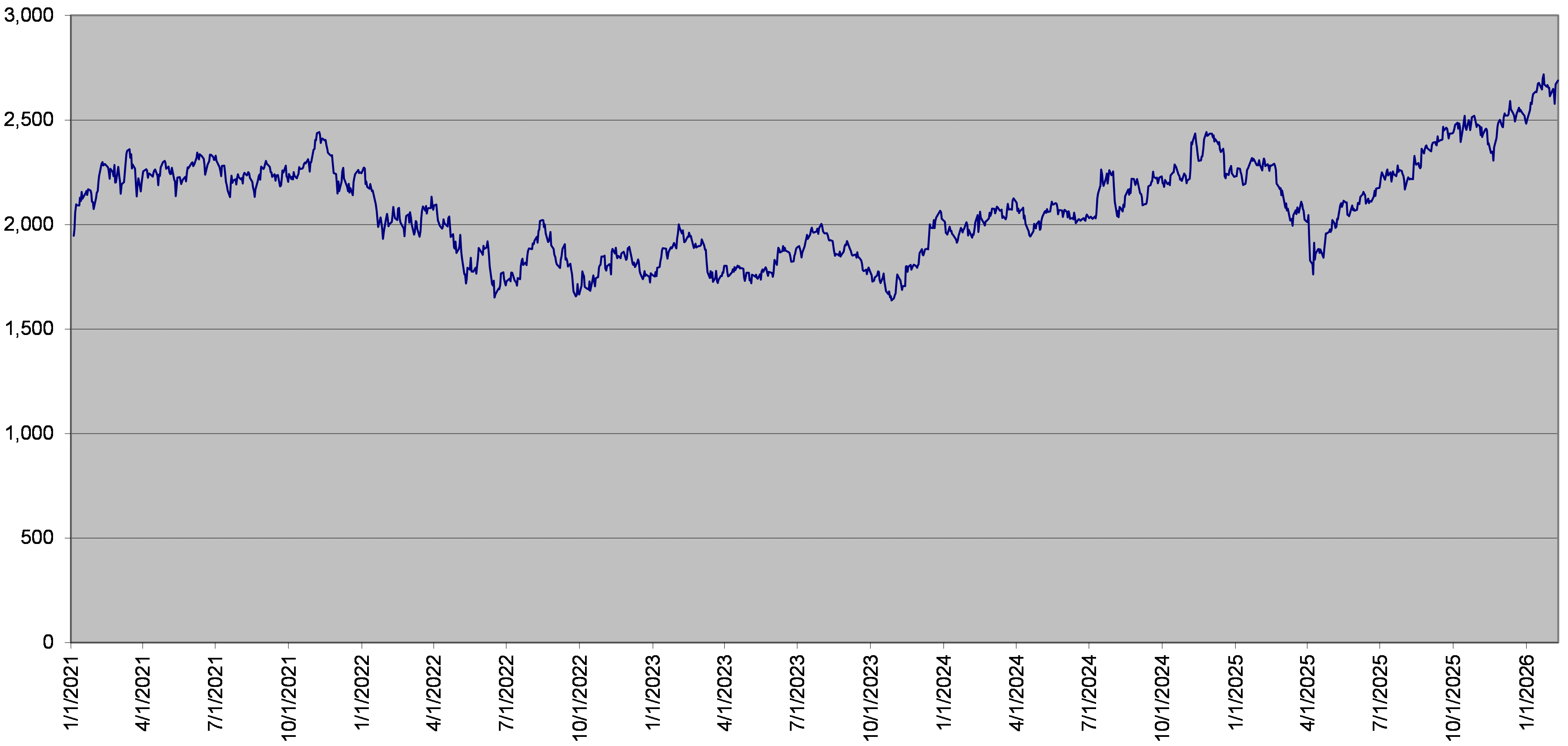 RTY Index Daily Closing Levels January 1, 2021 to February 9, 2026 |