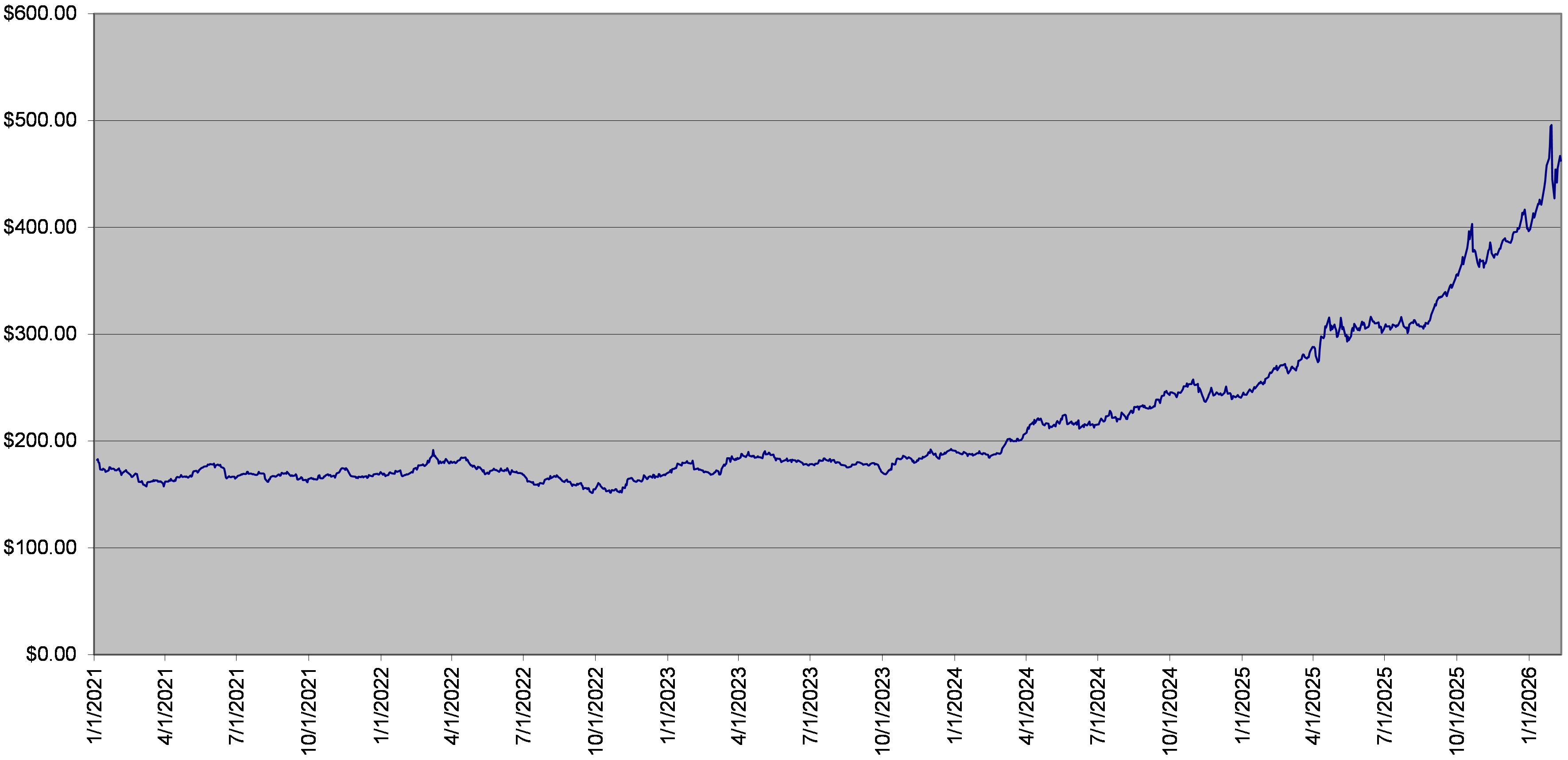 The closing level of the underlier on February 10, 2026 was $462.40. The following graph sets forth the daily closing levels of the underlier for the period noted below. We obtained the historical information presented in this document from Bloomberg Financial Markets, without independent verification. The underlier has at times experienced periods of high volatility. You should not take the historical closing levels of the underlier as an indication of its future performance, and no assurance can be given as to the closing level of the underlier at any time.