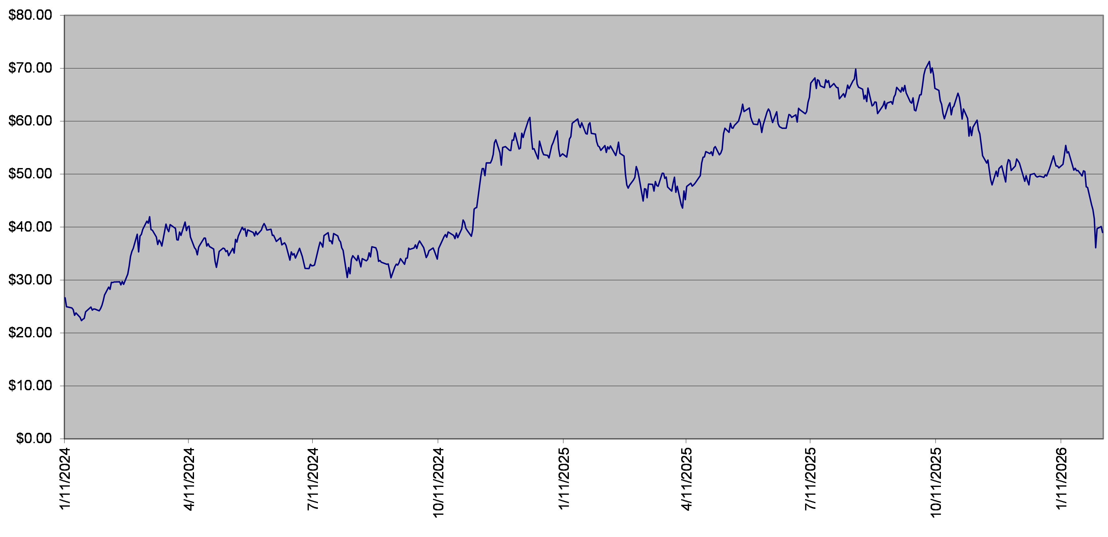 iShares® Bitcoin Trust ETF - Daily Closing Prices January 11, 2024* to February 10, 2026 |