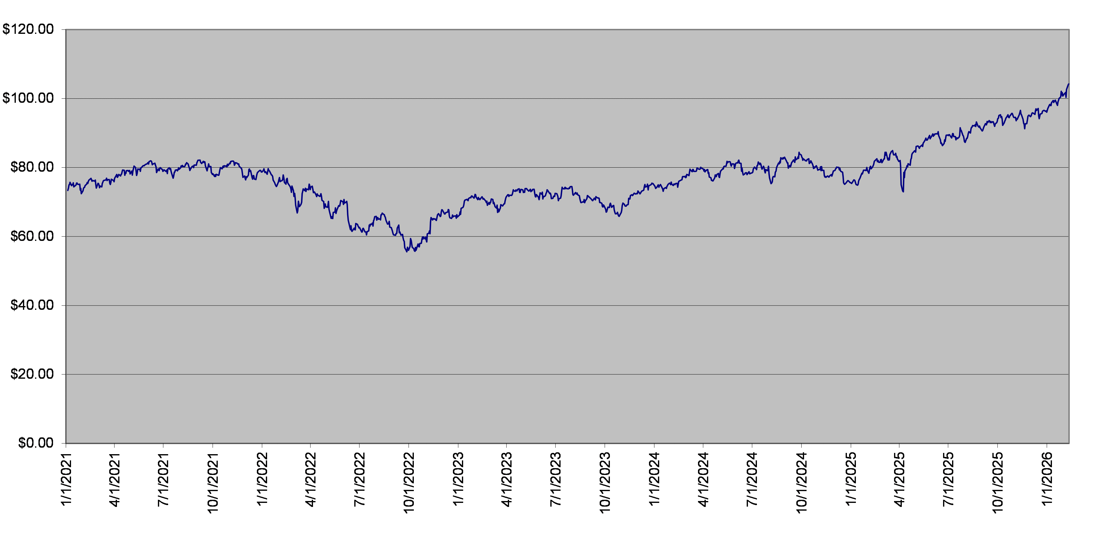 The closing level of the EFA Fund on February 10, 2026 was $104.24. The following graph sets forth the daily closing levels of the underlier for the period noted below. We obtained the historical information presented in this document from Bloomberg Financial Markets, without independent verification. The underlier has at times experienced periods of high volatility. You should not take the historical closing levels of the underlier as an indication of its future performance, and no assurance can be given as to the closing level of the underlier at any time.