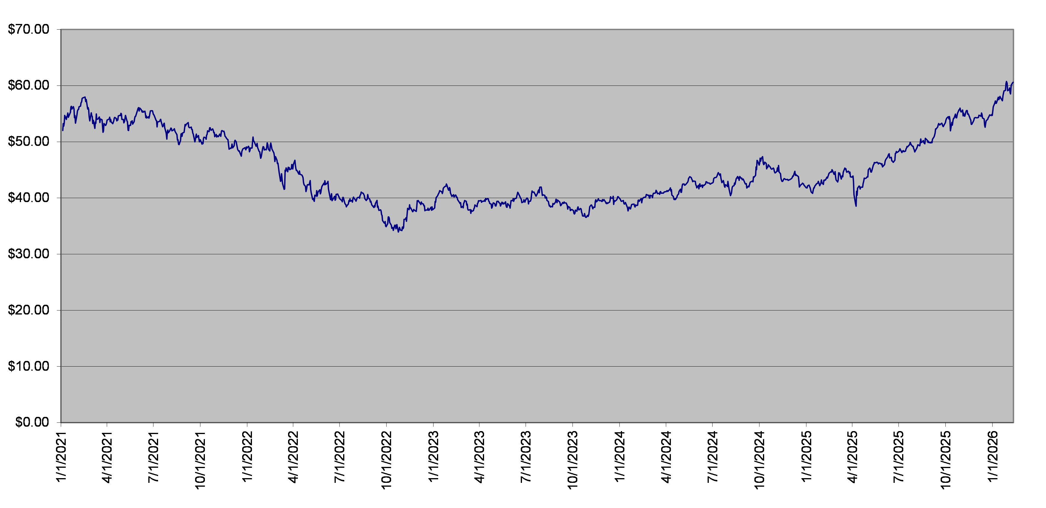 EEM Fund Daily Closing Levels January 1, 2021 to February 10, 2026 |